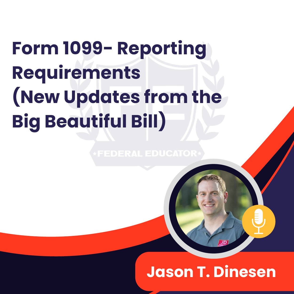In this timely, relevant, and actionable session, Jason Dinesen—known nationwide as “The 1099 Guy”—guides attendees through the practical realities of Form 1099 compliance. This session goes beyond the basics and dives deep into due diligence, backup withholding, and how to handle missing SSNs, all while preparing for increased IRS scrutiny and a dramatically changing landscape under the OBBB.
